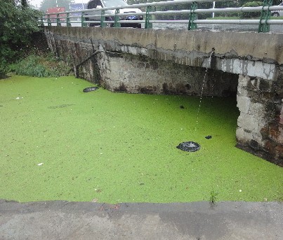 在當(dāng)?shù)卮髩晤^村村民的帶領(lǐng)下,記者找到了路家浜,這是一個(gè)斷頭浜,東頭連著永安河,在路家橋下還剩著幾根筑壩的鋼管,整個(gè)河面上漂浮著綠萍,只能依稀看到河水的顏色有些微黑。而在路家橋東頭,河水要比斷頭浜一側(cè)要清亮些。