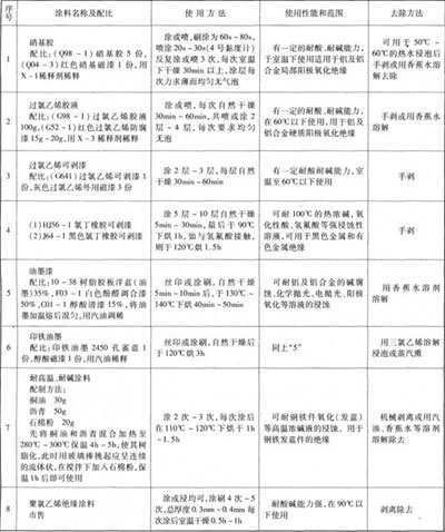 配方l和配方2適于工作溫度在40℃以下的鍍液,用于鍍鋅、鎘、銅、鎳、銀、鉛錫合金等,以及室溫或低溫陽(yáng)極氧化的零件絕緣。配方3適用于工作溫度在40℃~60℃的鍍鉻以及用草酸、硫酸進(jìn)行普通和硬質(zhì)陽(yáng)極氧化零件的絕緣。