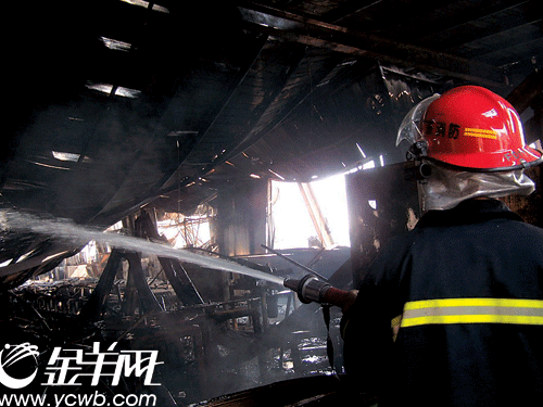 莞事記者肖寧:“現在是上午的9點鐘,經過消防官兵的全力撲救,現在火勢已經得到了撲滅,站在這個起火的車間,我們現在明顯可以感覺到,這里的溫度非常高,猶如進入了一個桑拿房一般。據電鍍廠的老板介紹,今天早上只有一名工人在這里操作,工人們都還沒有上班,所以這場火災并沒有造成明顯的人員傷亡,只是一些財產的損失。”